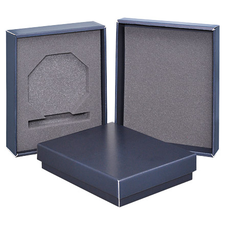 Упакована награда в синюю подарочную коробку.